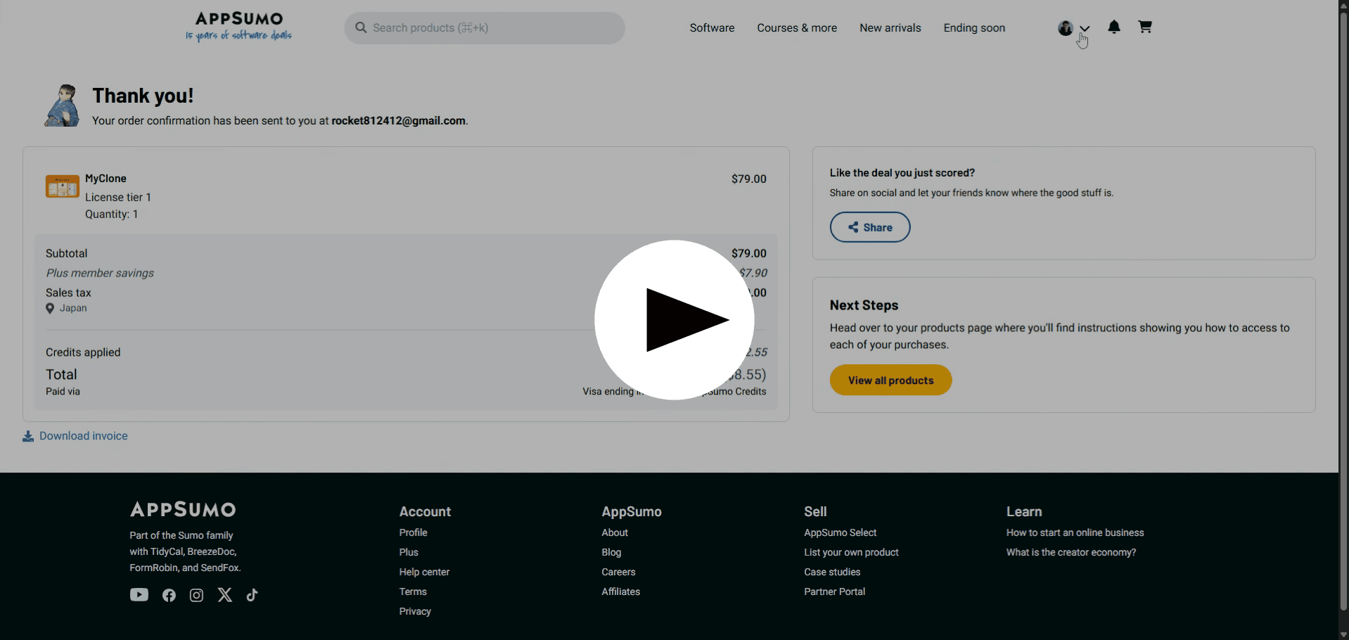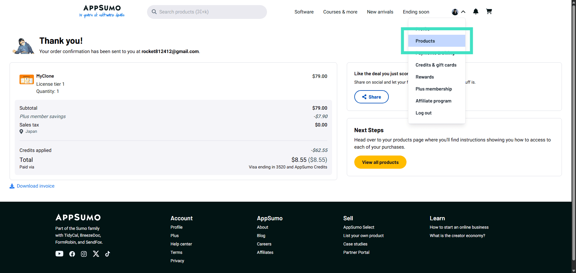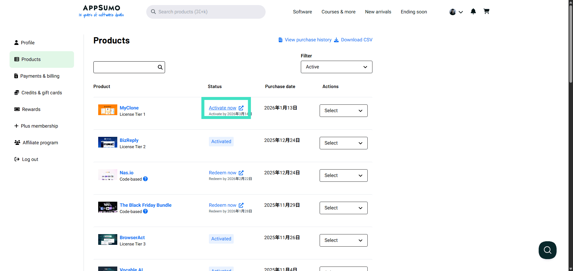 Step 2: View all your purchased products instantly